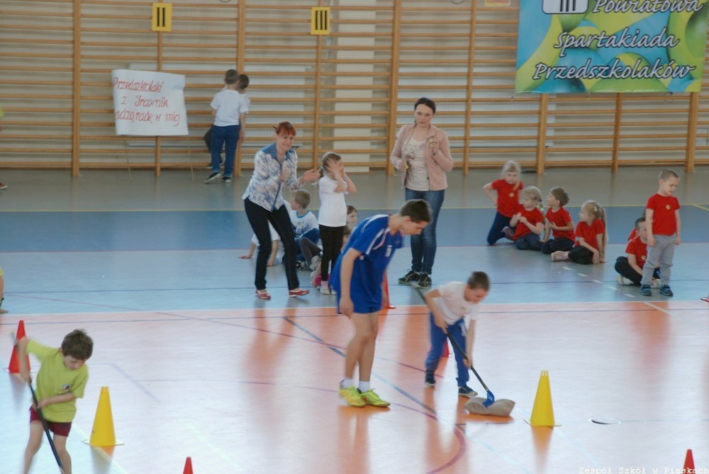 19 maja od godziny 9:00 na hali Zespołu Szkół w Piaskach 5 drużyn przedszkolaków rywalizowało w Powiatowej Spartakiadzie. Uczestniczyły w niej maluchy z Miejsko- Gminnego Przedszkola w Piaskach, Szkoły Podstawowej w Piaskach, Woli Piaseckiej, Trawnik i Bystrzejowic.