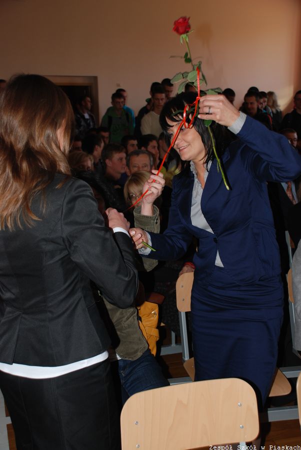 15 października 2012 roku w Zespole Szkół w Piaskach odbyła się uroczystość z okazji Święta Edukacji Narodowej. Jak co roku Samorząd Uczniowski w imieniu wszystkich uczniów złożył nauczycielom i wychowawcom najlepsze życzenia. Na uroczystość byli także zaproszeni emerytowani nauczyciele związani z naszą szkołą.