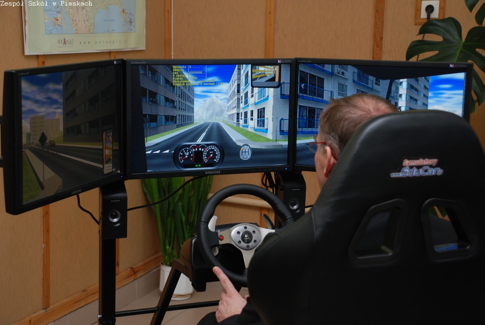 Zachęcała również do nauki matematyki. To ciekawy przedmiot, niestety wiele osób uważa go za bardzo trudny. Zaprezentowała nam naszą bazę dydaktyczną, którą po zakończeniu oficjalnego spotkania goście mogli zobaczyć a nawet wypróbować, jak np. symulator nauki jazdy. Niektórym szło lepiej, niektórym gorzej. Z naciskiem na to drugie. Ale to w końcu tylko symulator. Ciekawym nowym nabytkiem naszej szkoły jest tablica interaktywna, czyli duży ekran projekcyjny zastępujący myszkę i klawiaturę.