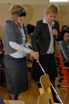 Na początek dzięki pani Kiernickiej prześledziliśmy rozwój chorób wzroku w poszczególnych klasach. Na przestrzeni kilku lat można zaobserwować wzrost stosunku liczby chorych do zdrowych. Poznaliśmy również w prezentacjach placówki zajmujące się edukacją dzieci i młodzieży głuchoniemych, niewidzących lub z częściowymi zaburzeniami. Dzięki paniom Gajewskiej i Borzęckiej dowiedzieliśmy się jak przebiega ich nauka i jak wiele mogą osiągnąć jeśli tylko trafią pod odpowiednią opiekę. W edukację osób nie słyszących, trzeba włożyć wiele wysiłku, ale efekty są imponujące. Posługując się językiem migowym mogą sprawnie kontaktować się z otoczeniem. Pan Daniel zaprezentował nam urządzenia służące właśnie takim osobom, od programów komputerowych, przez skomputeryzowane urządzenia wyposażone w klawiaturę w języku brajla, po narzędzia codziennego użytku, jak laska dla niewidzących. Niektóre z nich były naprawdę bardzo zaawansowane elektronicznie. Chętne osoby skorzystały z tych urządzeń. Dzięki nim, zwykłe, dwuwymiarowe rysunki, nabierały postaci trójwymiarowej, możliwej do odczytu niewidomym, a tekst napisany w brajlu może być przełożony na zwykły druk lub przeczytany na głos i na odwrót. Niestety, koszt takich urządzeń może wynosić nawet ok. 15 tysięcy złotych. Poza tym można było wypróbować sposób poruszania się niewidzących, czyli przy użyciu laski i po założeniu specjalnych gogli uniemożliwiających widzenie. Do sprawnego poruszania się w ten sposób potrzebne są lata praktyki i znajomość terenu. Nowoczesne laski działają na podczerwień. Kiedy napotkają przeszkodę w uchwycie uruchamia się sygnał wibracyjny. Konferencję podsumował wykład pani Mazurek na temat problemów głuchych i niedosłyszących, połączony z krótką prezentacją języka migowego. Na koniec nastąpił pokaz fragmentów filmików z występów, sukcesów w nauce i zabaw niepełnosprawnych, podopiecznych Specjalnego Ośrodka Szkolno-Wychowawczego Dzieci i Młodzieży Niesłyszącej i Słabo Słyszącej im. Jana Pawła II w Lublinie.. A na koniec dyrektor naszej szkoły zaprosił wszystkich zebranych na pyszny poczęstunek, który już wcześniej spróbowaliśmy podczas krótkiej przerwy.