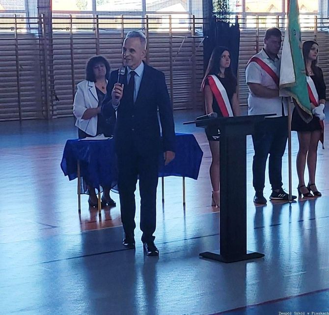 Podczas czwartkowej uroczystości inauguracji roku szkolnego 2022/2023 przeżyliśmy bardzo wzruszające chwile pożegnania wieloletniego pracownika szkoły (aż 30 lat pracy w naszej szkole) i Dyrektora Zespołu Szkół w Piaskach, który pełnił tę funkcję przez 15 lat - Pana Waldemara Szałka.