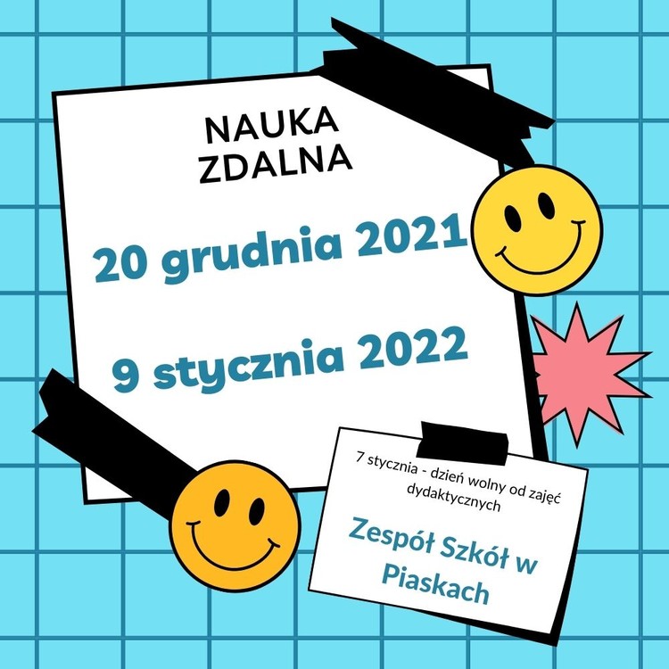 Od 20 grudnia 2021 r. do 9 stycznia 2022 r. w szkole będzie odbywała się nauka zdalna.