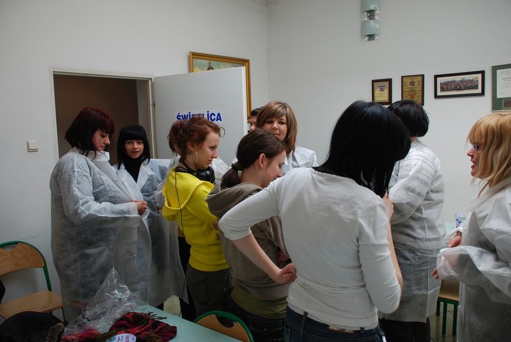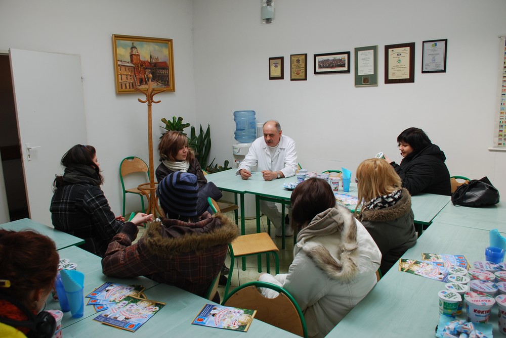 Byliśmy bardzo zaskoczeni, że jedyny zakład przemysłowy w naszej gminie tak świetnie funkcjonuje. Nie tylko produkuje smaczne wyroby, ale jest bezpieczny dla środowiska. Kierownik zakładu Pan Jan Świtacz zaprosił nas na mały poczęstunek oraz opowiedział pokrótce historię powstania i funkcjonowania mleczarni. Pokazał nam liczne dyplomy, wyróżnienia i nagrody, jakimi zakład został uhonorowany. Wierzcie nam dużo tego było. Każdy z nas dostał ochronne ubrania, w których ochoczo ruszyliśmy zwiedzać budynek oraz linie produkcyjne. Zaskoczyło nas nowoczesne wyposażenie mleczarni i sprawdziło się znane powiedzenie: „Cudze chwalicie, swego nie znacie”.
