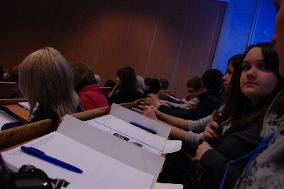 Ogłoszenie wyników 7 edycji konkursu gazetek szkolnych odbyło się 4 lutego w Wyższej Szkole Zarządzania i Administracji w Zamościu, jako jedna z atrakcji Dni Otwartych tej uczelni. Pierwszym punktem harmonogramu całej imprezy była prezentacja tańca brzucha w wykonaniu studentki Studium Tańca Nowoczesnego M2 w Zamościu w 3 wariantach – z mieczami, szarfami na łańcuchach (veil poi) oraz Skrzydłami Izis (jedwabna tkanina w kształcie skrzydeł). Następnie udaliśmy się na krótki wykład prowadzony przez studentów WSZiA, którzy skorzystali z możliwości odbywania staży zagranicznych w ramach europejskiego programu Erasmus.