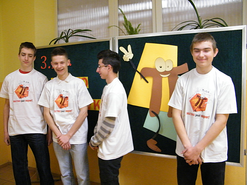 Wszyscy uczestnicy finału otrzymają bardzo atrakcyjne nagrody współfinansowane ze środków Europejskiego Funduszu Społecznego – specjalnie na tę okazję zaprojektowane koszulki z liczbą Pi. Żegnamy się do kolejnej edycji Święta Matematyki naszym pozdrowieniem: „Matma jest super!”